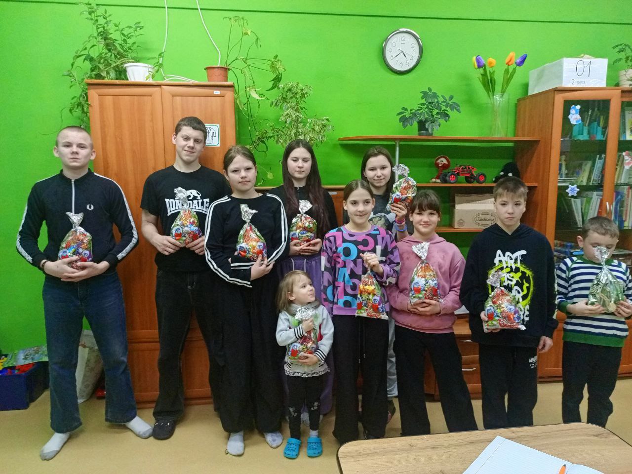 Мы передали ребятам сладкие подарки 55 шт. и конфеты.